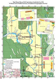 Total Land area of 9985 Hectares Located at Oral District , Kampong Spue Province  .Having a clear boundary with fencing.